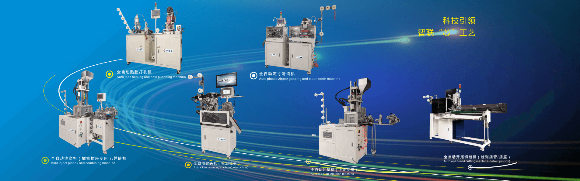 公司成立于1997年,是一家以科技創(chuàng)新為基礎(chǔ)的國(guó)家高新技術(shù)企業(yè),集研發(fā)、制造、銷售、服務(wù)于一體。主要產(chǎn)品有:金屬/尼龍/隱形/樹(shù)脂拉鏈機(jī)、鞋機(jī)等,在業(yè)界享有很高的聲譽(yù)。