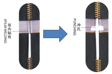 • 更換模具及少量配件即可同機完成尼龍、金屬、樹脂拉鏈等沖孔工藝。